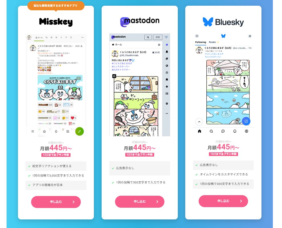 XServer SNSを使うと、MastodonMisskey、Blueskyといった人気の分散型SNSを、自分のサーバーで立ち上げることができます。